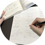 数学は方眼のノートで大きく書く事をおすすめしています。 目で見てわかるノート作りと、書きながら考えていく解き方が、理解のカギです。